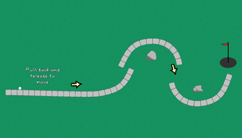 This game was made for the Mini Jam 203. It is a short golf game with flowy ramps that you used to make it in the hole. You only need to point and click to play. You click and drag your mouse back to launch the ball. There are five levels increasing in difficulty.